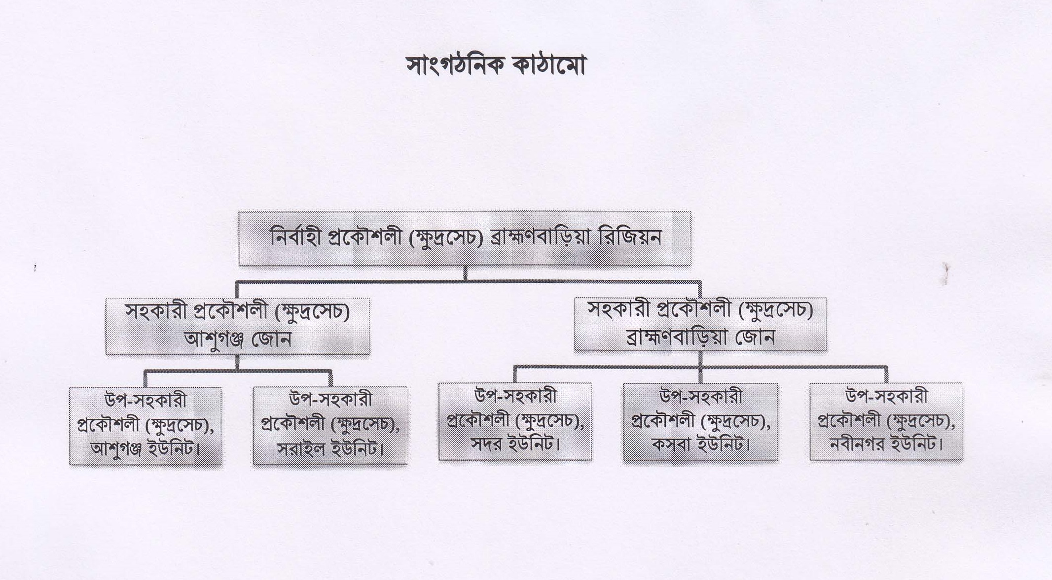 ব্রাহ্মণবাড়িয়া জেলায় বিএডিসি’র সেচ উইং এর সাংগঠনিক কাঠামো